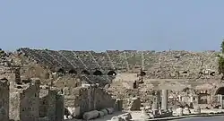 - ↑ a b c d e f g h i j k l «Roman theatre in Side». Turkish Archaeological News (en inglés). Consultado el 21 de septiembre de 2024.