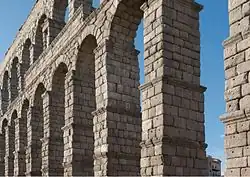Los romanos construyeron numerosos acueductos para abastecerse de agua. La propia ciudad de Roma se contaba con once acueductos hechos de piedra caliza, que proporcionaban a la ciudad más de 1 millón de metros cúbicos de agua cada día, suficiente para 3,5 millones de personas incluso en los tiempos modernos,[11] y con una longitud combinada de 350 kilómetros (217,5 mi).[12]