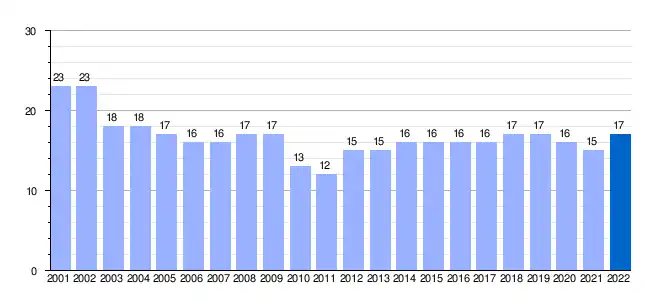 | Gráfica de evolución demográfica de Tejadillo[2] entre 2001 y 2022 |