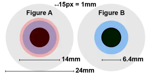 La resolución se deduce de la longitud de onda de la luz y de la apertura, expresadas en la misma unidad; donde 550 nm se transforman a mm según la expresión: .
