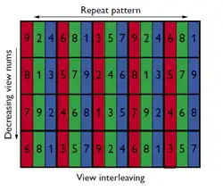 Una característica de todos los televisores 3D es la diferencia entre la resolución del píxel y la profundidad. En una escena en 3D, los píxeles que en 2D contribuyen a una resolución también se utilizan para mostrar la profundidad. Si el conjunto de lentes se posicionan de forma vertical encima de la pantalla, la resolución horizontal disminuirá en un factor igual al número de imágenes mostradas a la vez. Por ejemplo, un televisor que muestre 9 imágenes a la vez y con lentes colocadas de forma vertical, su resolución horizontal será 9 veces inferior a la vertical y causará un desequilibrio en la relación de aspecto del píxel. Este problema se soluciona inclinando las lentes con un patrón repetitivo, de esta manera se disminuye la resolución horizontal y vertical en un factor de tres, haciendo que se mantenga en cada píxel una relación cuadrada. El efecto que se percibe es que algunos píxeles se repiten horizontalmente. La inclinación de las lentes hace que, mientras que se cambia de punto de vista, se intercale una visión poco coherente e incorrecta. De todas formas, este método es necesario para no ver zonas con sitios vacíos.