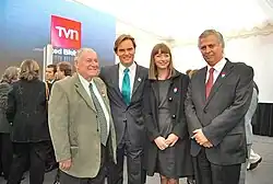 El alcalde de Talcahuano, Gastón Saavedra, junto a Amaro Gómez-Pablos y Consuelo Saavedra en la inauguración del nuevo edificio de TVN Red Biobío.