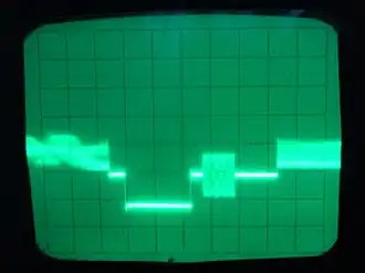 - ↑ El patrón de pulsos de sincronización vertical también indica si cada campo representa líneas pares o impares en sistemas entrelazados, dependiendo de si un pulso comienza al principio de una línea horizontal o a mitad de la misma.