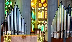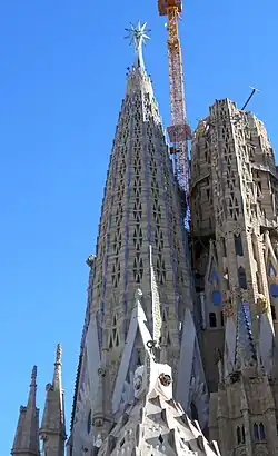 El Templo Expiatorio de la Sagrada Familia (en catalán: Temple Expiatori de la Sagrada Família), conocido simplemente como la Sagrada Familia, es una basílica católica de Barcelona (España), diseñada por el arquitecto Antoni Gaudí. Iniciada en 1882, todavía está en construcción. Es la obra maestra de Gaudí y el máximo exponente de la arquitectura modernista catalana. Es el monumento más visitado de España,[1] y es la iglesia más visitada de Europa tras la basílica de San Pedro del Vaticano.[2] Cuando esté finalizada, será la iglesia cristiana más alta del mundo.