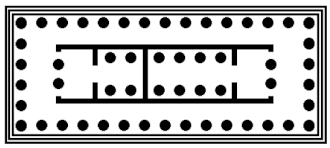 Delante de cada una de las dos naos había un pronaos con dos columnas delante. Bajo el suelo había un depósito de agua bendita.[1][2] El templo es el primer edificio conocido en el que estilóbato utilizó la curvatura para hacer que las proporciones del templo parecieran más simétricas de lo que eran en realidad. Más tarde, el mismo invento se aplicó al Partenón de la Atenas. El techo del templo estaba decorado con esfinges de terracota.[3]