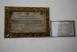 "A Dios óptimo Todopoderoso. Guarda éste sepulcro a la venerable en Cristo Virgen Catarina de San Juan, que la tierra del Mogor dio al mundo y la Puebla de los Ángeles al cielo. Después que había vivido 82 años, amada principalmente de Dios, no menos de los hombres, humilde y pobre en la esclavitud, aunque ilustre por su sangre real, acaeció su fallecimiento, seguido de gran aclamación por parte del pueblo y del clero en la víspera de los tres Santos Reyes, el año de 1688".