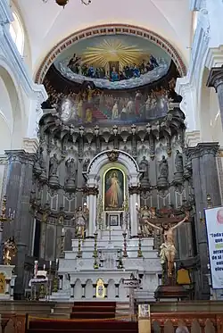 A fines del siglo XIX fueron colocadas las estatuas de tres santos jesuitas: San Ignacio de Loyola, San Francisco Javier, San Luis Gonzaga y San Juan Berchmans.