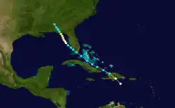 Una tormenta formada al sur de Cuba el 2 de octubre. Rodeó Cuba y tocó tierra en Gainesville, Florida como una tormenta tropical con vientos de 72 km/h. Salió al mar y golpeó la región oriental de la costa de Canadá. Se disipó el 8 de octubre.
