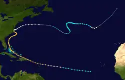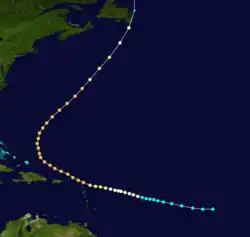 Se formó a mitad de camino entre África y América del Sur el 3 de septiembre. Moviéndose hacia oeste-noroeste y llegando a categoría 3 con vientos de 185 km/h sin llegar a golpear tierra.