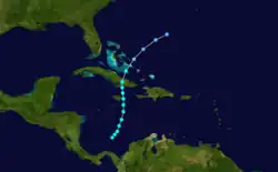Otra tormenta formada al este de las Antillas Menores el 29 de agosto de 1899. Se movió hacia el oeste a través de las islas, giró hacia arriba y golpeó Haití con categoría 1 y vientos de 129 km/h.. A continuación, atravesó las Bahamas como un huracán categoría 2 con vientos de 166 km/h. Se trasladó al norte-noroeste hacia el Atlántico, donde siguió rondando hasta que finalmente se disipó el 8 de septiembre.