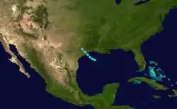 La primera tormenta tropical de la temporada se detectó por primera vez en el norte del golfo de México como una tormenta tropical. Llegó a tierra en Texas el día 27, pero se debilitó rápidamente a una depresión tropical y luego se disipó.