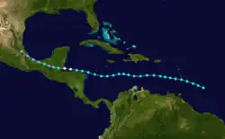 La depresión tropical que se convirtió en el huracán Abby se desarrolló al este de las Antillas Menores el 10 de julio, probablemente de una onda tropical. A su paso por las islas, rápidamente se convirtió en un huracán esa noche. Abby quedó desorganizado al cruzar el Mar Caribe, y se debilitó a tormenta tropical el día 13. Se convirtió en mejor organizado mientras se acercaba a las costas de Honduras Británica, hoy conocido como Belice y alcanzó un máximo de 140 km/h (87 mph) antes de golpear el país el día 15. Se disipó al día siguiente sobre México, después de causar cerca de 600.000 dólares (1960 USD) en daños y matando a seis personas en Santa Lucía. Los restos de Abby cruzaron al Pacífico se convirtieron en el Huracán Celeste.