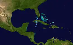 La temporada de huracanes del Atlántico de 1969 fue la temporada de huracanes del Atlántico más activa desde la temporada de 1933 , y fue el último año de la era de oscilación multidecadal (AMO) del Atlántico positiva ("de alta calidad") más reciente . La temporada de huracanes comenzó oficialmente el 1 de junio y duró hasta el 30 de noviembre. La temporada tuvo la mayor cantidad de sistemas que alcanzaron la categoría de huracán -doce- en una sola temporada, hasta que se superó ese récord en 2005. La temporada estuvo por encima del promedio a pesar de El Niño , que generalmente suprime la actividad en el Océano Atlántico , mientras aumenta la actividad de los ciclones tropicales en el Océano Pacífico .. La actividad comenzó con una depresión tropical que provocó grandes inundaciones en Cuba y Jamaica a principios de junio. El 25 de julio, se desarrolló la tormenta tropical Anna, la primera tormenta con nombre de la temporada. Más adelante en la temporada, la Depresión Tropical Veintinueve provocó graves inundaciones locales en Florida Panhandle y el suroeste de Georgia en septiembre.
