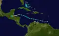 La tormenta tropical Martha se desarrolló en el suroeste del Mar Caribe el 21 de noviembre. Inicialmente, la tormenta se desarrolló con vientos sostenidos de 50 mph (85 km/h), omitiendo el estado de depresión tropical. Permaneció estacionario y rápidamente se intensificó hasta convertirse en un huracán. Martha alcanzó vientos máximos sostenidos de 90 mph (150 km/h) el 22 de noviembre. Posteriormente, Martha se debilitó y se desplazó hacia el sur. El 24 de noviembre, Martha tocó tierra en Veraguas , Panamá, como una fuerte tormenta tropical. Martha fue el único ciclón tropical registrado que tocó tierra en Panamá. El sistema se debilitó a una depresión tropical y se disipó sobre la tierra el 25 de noviembre.