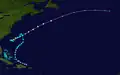Una depresión subtropical se formó aproximadamente a 270 millas (435 km) al este-sureste de Cape Hatteras , Carolina del Norte, alrededor de las 12:00 UTC del 21 de septiembre. Seis horas después, el sistema se intensificó hasta convertirse en una tormenta subtropical mientras se dirigía hacia el este-noreste. La tormenta curvó hacia el noreste el 24 de septiembre y se transformó en huracán ese día, con vientos máximos sostenidos de 75 mph (120 km/h) y una presión barométrica mínima de 987 mbar (29,1 inHg). Poco después, el huracán comenzó a acelerarse, antes de disiparse a unas 200 millas (320 km) al sur de Terranova a principios del 26 de septiembre.