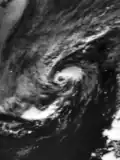 Una depresión subtropical se desarrolló a unas 970 millas (1560 km) al este-noreste de las Bermudas a las 12:00 UTC del 20 de octubre. Después de intensificarse hasta convertirse en una tormenta subtropical temprano al día siguiente, el fortalecimiento adicional fue lento. Inicialmente, el sistema se dirigió hacia el noreste, pero se curvó hacia el sureste el 24 de octubre. Durante ese tiempo, comenzó a adquirir características de ciclón tropical, pasando a tormenta tropical a las 12:00 UTC. La tormenta reanudó su movimiento hacia el noreste y continuó intensificándose. A primeras horas del 27 de octubre, la tormenta se convirtió en huracán. basado en un informe de vientos de 75 mph (120 km/h) de Pretoriavarias horas después. En el momento de la intensidad del huracán, es probable que el campo de vientos con fuerza de huracán tuviera solo 6 millas (9,7 km) de radio y su campo de viento con fuerza de tormenta tropical tuviera solo 69 millas (111 km) de diámetro. A las 12:00 UTC del 27 de octubre, el ciclón se debilitó a tormenta tropical y comenzó a acelerar. Aproximadamente 24 horas después, el sistema hizo la transición a un ciclón extratropical mientras se encontraba aproximadamente a 500 millas (800 km) al norte-noreste de Graciosa en las Azores.