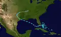 Una depresión tropical se desarrolló frente a la costa oeste de África el 7 de agosto, con características organizadas de convección y bandas. Un día después, la depresión pasó al sur de Cabo Verde mientras avanzaba por el Atlántico tropical. El 10 de agosto se intensificó a tormenta tropical, luego de que las tormentas eléctricas se concentraran más. Sin embargo, un vuelo de Hurricane Hunters dos días después observó un sistema débil, lo que sugiere que la tormenta se debilitó hasta convertirse en una depresión tropical. Mientras se acercaba a las Antillas Menores, la depresión giró hacia el noroeste y se volvió a intensificar hasta convertirse en una tormenta tropical, con ráfagas de viento con fuerza de huracán al norte del centro. A última hora del 14 de agosto, la circulación se abrió en un canal. El 15 de agosto, se reformó una circulación y el sistema se convirtió nuevamente en una depresión tropical al pasar por alto el este de las Bahamas. Un día después, el sistema se volvió a intensificar hasta convertirse en una tormenta tropical compacta mientras giraba hacia el norte. El 17 de agosto, la tormenta tocó tierra a lo largo delOuter Banks de Carolina del Norte , primero en Atlantic Beach y luego en Rodanthe . A medida que la tormenta aceleraba hacia el noreste, se intensificó hasta convertirse en huracán, con vientos máximos de 80 mph (130 km/h), según el ojo bien definido y un informe de un barco cercano. El 19 de agosto, el sistema se convirtió en extratropical al sur de Terranova y, posteriormente, disminuyó la velocidad y cambió su trayectoria hacia el sur, solo para reanudar una trayectoria hacia el este el 21 de agosto. A última hora del 24 de agosto, el antiguo huracán se disipó al norte de las Azores.