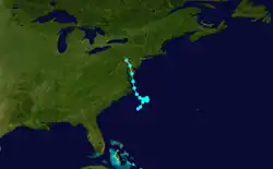 - ↑ a b James Hudgins (2000), Tropical cyclones affecting North Carolina since 1586, National Weather Service, archivado desde el original el 11 de marzo de 2007, consultado el 17 de noviembre de 2011.