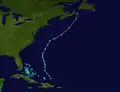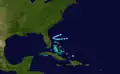 Una depresión tropical anormalmente pequeña se desarrolló alrededor de 650 km al este de Cabo Cañaveral el 8 de agosto. Alcanzó una fuerza máxima de 55 km/h y una presión mínima de 1009 mbar. La tormenta en primer lugar se dirigió al oeste-suroeste, pero finalmente, comenzó a girar al oeste-noroeste, y finalmente hacia el noreste. Se disipó el 11 de agosto.