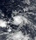 Un área de tormentas eléctricas guisado al sur de las islas de Hawái durante varios días. Para el 15 de septiembre, se había organizado en la depresión tropical Tres-C, y rápidamente se convirtió en una tormenta tropical que tarde. El ciclón se desplazó hacia el noroeste por un día antes de disminuir a un rastreo para el día siguiente. El ciclón se debilitó y volvió al suroeste en una depresión tropical debido a la cizalladura vertical del viento. Se disipó al suroeste de Hawái cerca de 13 ° N 162 ° W a última hora del 18 de septiembre.