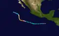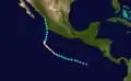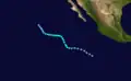 El 18 de octubre, una perturbación tropical se observó alrededor de 300 millas (485 kilómetros) al sur del Golfo de Tehuantepec . Hacia el oeste-noroeste, la perturbación se actualizó en una depresión. Después de girar al noroeste, la depresión se disipó una hora antes de trasladarse a tierra. Que dura menos de 24 horas, veintidós fue la tormenta de vida más corta de la temporada. A pesar de la falta de daños, 10 pulgadas (250 mm) de lluvia se midió a lo largo de porciones de la costa sur de México.