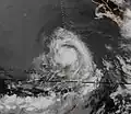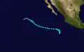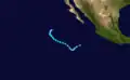 Una ola tropical surgió en la costa de África tras el Huracán Luis el 31 de agosto. El empuje de Luis impidió que la ola se desarrollada y continuó hasta el oeste hasta llegar al océano Pacífico oriental el 12 de septiembre. La convección creció al moverse hacia el golfo de Tehuantepec y la nubosidad se organizó suficientemente como para quedar recogida en la clasificación Dvorak el 15 de septiembre. Basándose en el desarrollo de la circulación baja, se predijo que el sistema formaría la Depresión Tropical Once-E el 16 de septiembre mientras se encontraba situada a 465 km al sur de Manzanillo, Colima.[52] Debido a que la depresión tropical se movía sobre un área de aguas cálidas el Centro Nacional de Huracanes predijo que la depresión se intensificaría ligeramente hasta tener vientos de 110 km/h en las próximas 72 horas.[53]