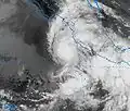 A finales del 3 de septiembre un ojo comenzó a formarse en el centro de la convección mientras Henriette se movió hacia el noroeste.[41] El ojo quedó más definido al día siguiente y Henriette alcanzó su cota máxima de 160 km/h cuando la porción septentrional del ojo se movió hacia el sur de la península de Baja California. El huracán cruzó rápidamente la punta de la península y se introdujo de nuevo en el océano Pacífico más debilitado con vientos de 135 km/h[42] La convección se fue haciendo más débil conforme sobrevolaba aguas más frías,[43] y el 6 de septiembre Henriette pasó a ser una depresión tropical. La tormenta giró al oeste y gradualmente se debilitó hasta que se disipó el 8 de septiembre.[38]