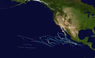 | Lorena | 2 – 4 de octubre | Tormenta tropical | 95 (60) | 997 | 1.38 | Ninguno | N/A | 0 | ||