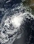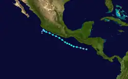 La Depresión tropical Dieciséis-E se formó el 8 de octubre de un área baja presión al sur de los bordes costeros de El Salvador, Honduras y Nicaragua. Durante la madrugada del 9 de octubre, se convirtió en tormenta tropical adquiriendo el nombre de Odile.
