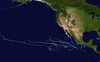 Según la Oficina Nacional de Administración Oceánica y Atmosférica de los Estados Unidos (NOAA), la temporada promedio de huracanes del Pacífico oriental entre 1991 y 2020 contuvo aproximadamente 15 tormentas tropicales, 8 huracanes, 4 huracanes mayores, con un índice de Energía Ciclónica Acumulada (ACE) casi normal entre 80 y 115.[5] En términos generales, ACE es una medida del poder de una tormenta tropical o subtropical multiplicado por el tiempo que existió. Solo se calcula para avisos completos sobre sistemas tropicales y subtropicales específicos que alcanzan o superan velocidades de viento de 39 mph (63 km/h). El Oficina Nacional de Administración Oceánica y Atmosférica (NOAA) normalmente clasifica una temporada como superior al promedio, promedio o inferior al promedio según el índice ACE acumulativo, pero a veces también se considera la cantidad de tormentas tropicales, huracanes y huracanes importantes dentro de una temporada de huracanes.[5]