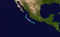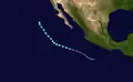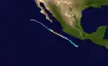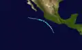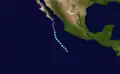 El 4 de junio de 2025 se formó una vaguada de baja presión frente a la costa del sur de México.[39] Dos días después, las lluvias y tormentas eléctricas asociadas con la baja presión aumentaron gradualmente cerca del Golfo de Tehuantepec.[40] En la mañana del 8 de junio, se había desarrollado una circulación de bajo nivel cerrada y bien definida dentro de la perturbación, marcando la formación de la tormenta tropical Bárbara.[41] Barbara se fortaleció de manera constante al día siguiente y a las 14:00 UTC del 9 de junio se había convertido en un huracán mínimo de categoría 1, mientras se encontraba a unas 155 millas (250 km) al suroeste de Manzanillo, Colima.[42] Sin embargo, más tarde ese mismo día, el sistema se debilitó y cayó por debajo de la fuerza de un huracán.[43] Luego, el 10 de junio, cuando Barbara se desplazaba a través de aguas más frías y hacia un ambiente atmosférico menos favorable, su convección profunda disminuyó considerablemente y,[44] a última hora de ese mismo día, se había degenerado en un remanente de baja presión.[45][46]
