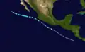 La actividad en el Pacífico Oriental comenzó con la formación y desarrollo de la tormenta tropical Alvin el 28 de mayo,[9] dos semanas después del inicio oficial de la temporada, pero casi dos semanas antes de la fecha promedio de formación de la primera tormenta con nombre de la cuenca.[10] Alvin persistió frente a la costa de México durante un par de días, antes de degenerar en un remanente de baja intensidad el 31 de mayo.[11] Dos tormentas, el huracán Bárbara y la tormenta tropical Cosme, se formaron el 8 de junio frente a la costa suroeste de México.[2] Luego vino la tormenta tropical Dalila, que se formó cerca de la costa del sur de México el 13 de junio.[12] El huracán Erick se formó en la mañana del 17 de junio frente a las costas del sur de México.[13] Erick fue la quinta tormenta nombrada más temprana registrada en la cuenca del Pacífico Oriental, superando la marca del 25 de junio establecida por el huracán Enrique de 2021.[14] También fue el primer gran huracán registrado en tocar tierra en cualquiera de las costas de México (Pacífico o Atlántico); el récord anterior en la costa del Pacífico lo había establecido el huracán Kiko el 26 de agosto de 1989.[15][16] El siguiente huracán fue el Flossie,[17] el 29 de junio, que se convirtió en un huracán de categoría 3 frente a la costa suroeste de México.[18] Dalila, Erick y Flossie se convirtieron en la cuarta, quinta y sexta tormentas con nombre respectivamente, más tempranas en el Pacífico Oriental desde que comenzó a nombrarse oficialmente a las tormentas allí en 1960.[19] La actividad tropical en el Pacífico central comenzó con la formación del huracán Iona el 27 de julio.[20] Al día siguiente, se formó la tormenta tropical Keli.[21] Luego, el huracán Gil se formó en pleno Pacífico oriental el 31 de julio, muy al sur-suroeste de la península de Baja California.[22]