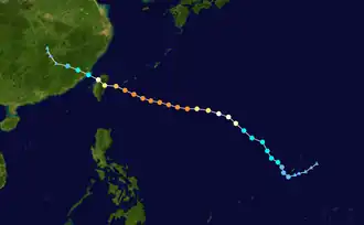 Las agencias meteorológicas ahora operan en Guangdong y Hainan modernizó un centro de baja presión sobre el Mar de China del Sur a una depresión tropical a las 08:00 hora local, 6 de octubre. El Observatorio de Hong Kong hizo lo mismo 30 horas después. El Centro Conjunto de Advertencia de Tifones (JTWC) finalmente emitió una advertencia para este sistema a las 15:00 UTC del 7 de octubre, y la depresión tropical número 20W se envió al sistema. El Centro Conjunto de Advertencia de Tifones (JTWC) emitió su aviso final sobre el sistema solo seis horas después, 55 millas náuticas (102 km) al oeste-noroeste de Huế en Vietnam. Como el sistema nunca alcanzó la fuerza de tormenta tropical, no se le dio un nombre de la lista. Sin embargo, el único daño que causó, si lo hubo, fue que se registraron cantidades de lluvia masiva: se registraron más de 230 mm (9 pulgadas) en algunas partes de Hainan.