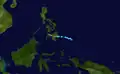 Un área de baja presión al sur de Woleai se convirtió en una depresión tropical el 12 de abril.[38][39] Unas horas más tarde, el Centro Conjunto de Advertencia de Tifones (JTWC) emitió un TCFA para la tormenta en desarrollo, y PAGASA comenzó a emitir avisos para la depresión tropical, ya que permanecía fuera del PAR.[40][41] El 13 de abril, el Centro Conjunto de Advertencia de Tifones (JTWC) actualizó la tormenta a depresión tropical y le asignó la designación Dos-W.[42] A las 18:00 UTC, la Agencia Meteorológica de Japón (JMA) actualizó el ciclón a tormenta tropical y lo llamó Surigae.[43] El 15 de abril a las 00:00 UTC, la Agencia Meteorológica de Japón (JMA) actualizó Surigae a una tormenta tropical severa cuando comenzó a formarse un ojo.[44] Más tarde ese día, el Centro Conjunto de Advertencia de Tifones (JTWC) convirtió la tormenta en un tifón, convirtiéndola en la primera de la temporada. La Agencia Meteorológica de Japón (JMA) hizo lo mismo temprano al día siguiente cuando se desarrolló una densa nube central que llenó el ojo original. Surigae continuó intensificándose rápidamente, y el 16 de abril, el Centro Conjunto de Advertencia de Tifones (JTWC) actualizó Surigae a un tifón equivalente a categoría 2 en la escala de huracanes de Saffir-Simpson (EHSS).[45] El sistema continuó su rápida intensificación hasta que alcanzó el estado de súper tifón de categoría 5, convirtiéndose en el tifón más intenso jamás registrado en el mes de abril.[46][47] Surigae pronto alcanzó su intensidad máxima, con una presión central mínima de 895 milibares (26,4 inHg), vientos máximos sostenidos de 10 minutos de 220 km/h (140 mph) y vientos sostenidos de 1 minuto de 305 km/h (190 mph).[48][49] Después de alcanzar la intensidad máxima, los signos de una pared del ojo concéntrica indicaron que la tormenta estaba experimentando un ciclo de reemplazo de la pared del ojo, con la capa densa central comenzando a calentarse y el ojo llenándose de nubes.[50][51] El 19 de abril, luego de su ciclo de reemplazo de la pared del ojo, Surigae se convirtió en anular.[52] Unos días después, el 22 de abril, Surigae comenzó a debilitarse nuevamente, la estructura de la tormenta se deterioró y su gran ojo se disipó.[53] Poco después, toda la convección restante se cortó hacia el este a medida que la tormenta avanzaba sobre aguas más frías.[54] Como la mayoría de las tormentas eléctricas restantes se habían disipado, el Centro Conjunto de Advertencia de Tifones (JTWC) evaluó que Surigae pasó a ser un ciclón subtropical el 23 de abril.[55] A última hora del 24 de abril, el Centro Conjunto de Advertencia de Tifones (JTWC) emitió su aviso final sobre el sistema, ya que se acercaba a la finalización de su transición extratropical.[56] Unas horas más tarde, la Agencia Meteorológica de Japón (JMA) declaró que Surigae se había vuelto extratropical.[57]