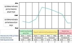 - ↑ Palaci, Francisco (2005). Psicología de la organización. España: Pearson educación. «Son más eficaces en situaciones medianamente favorables (algunos son favorables y otros son desfavorables)».
