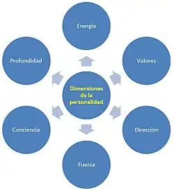La personalidad también se refiere al patrón de pensamientos, sentimientos, ajustes sociales y comportamientos exhibidos consistentemente a lo largo del tiempo que influye fuertemente en las expectativas, autopercepciones, valores y actitudes de uno. La personalidad también predice las reacciones humanas a otras personas, problemas y estrés.[1][2] Allport (1937) describió dos formas principales de estudiar la personalidad: la nomotética y la idiográfica. La psicología nomotética busca leyes generales que puedan aplicarse a muchas personas diferentes, como el principio de autorrealización o el rasgo de la extraversión. La psicología idiográfica es un intento de comprender los aspectos únicos de un individuo en particular.