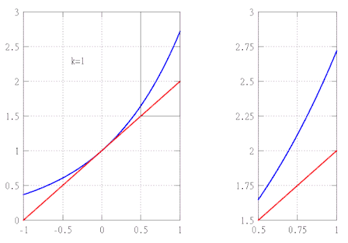 Suponiendo que se desea aproximar la función en el intervalo con un error no mayor a . Este ejemplo necesita que se conozcan las siguientes propiedades de la función exponencial: