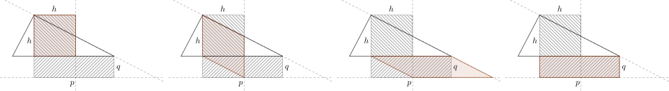 El cuadrado de la altitud se puede transformar en un rectángulo de igual área con lados p y q con la ayuda de tres aplicaciones de corte (las aplicaciones de corte preservan el área):