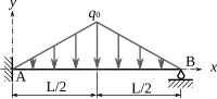 y el diagrama de momentos flectores es como el de la figura de la derecha. Las reacciones en los apoyos calculadas mediante las ecuaciones de (5):