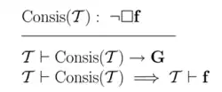 (Los numerales [n] son los símbolos que utilice el lenguaje de la teoría para especificar los números naturales concretos. En el ejemplo de la aritmética de Peano en la sección siguiente, los numerales son los símbolos dados por: [0] ≡ 0, [1] ≡ S0, [2] ≡ SS0, etc.). La ω-consistencia implica la consistencia (pero no al revés). El enunciado «fuerte», en el que solo se requiere la consistencia de la teoría fue probado por J. B. Rosser mediante un método muy similar.