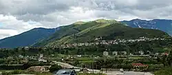 La población se extiende en una alta meseta en la margen izquierda del río Vjosë, a unos tres kilómetros aguas abajo de su unión con el Drino. El nombre significa "Cerro de Helena".