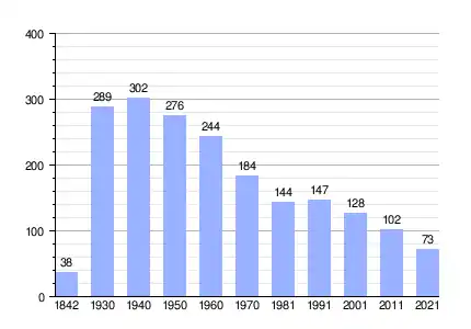 | Gráfica de evolución demográfica de Terradillos de Esgueva[4] entre 1842 y 2021 |