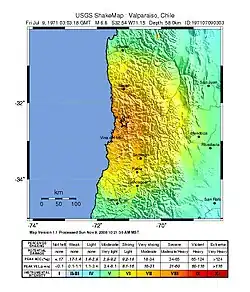 | Coordenadas del epicentro | 33°30′40″S 71°12′25″O / -33.511, -71.207 | |