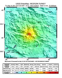 - ↑ «Magnitud Turquia». USGS. 19 de mayo de 2011. Archivado desde el original el 22 de mayo de 2011. Consultado el 20 de mayo de 2011.