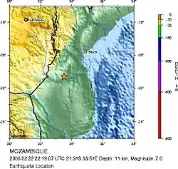 El terremoto de Mozambique de 2006 fue un sismo registrado el 23 de febrero de dicho año en el este de África. El epicentro del fenómeno se localizó a 250 km de la ciudad de Beira y a 520 km de la capital mozambiqueña de Maputo. El terremoto se pudo percibir desde el sur de Zimbabue hasta el norte de Sudáfrica a pesar de que se sintió con mucha más fuerza en Mozambique y tuvo una magnitud de 7.0 grados en la escala sismológica de Richter, siendo el mayor movimiento en décadas en esa zona. Cinco personas murieron y 30 resultaron heridas.[2]