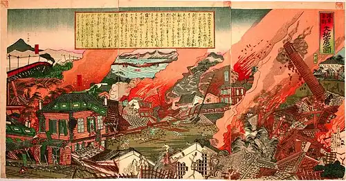 - ↑ a b Clancey, G. (2006), Earthquake Nation: The Cultural Politics of Japanese Seismicity (en inglés), University of California Press, pp. 113-115, ISBN 978-0-520-24607-2.