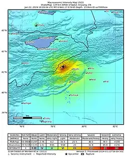 - ↑ National Earthquake Information Center (22 de enero de 2024). «M 5.5 - 122 km WNW of Aykol, China». United States Geological Survey. Consultado el 22 de enero de 2024.