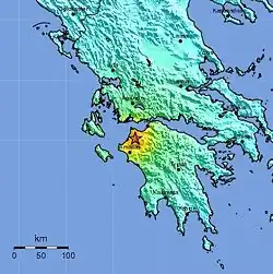 El terremoto del Peloponeso de 2008 fue un sismo, que dejó como consecuencia dos muertos, más de 220 personas heridas y al menos 2.000 personas sin hogar, ocurrido el 8 de junio de 2008 en el oeste del Peloponeso, Grecia. El terremoto golpeó el área a las 15:25 local (13:25 UTC), con una magnitud de momento de 6,2, de acuerdo al Instituto Geodinámico de Atenas. Fue sentido en lugares tan alejados como Atenas y el la zona sur de Italia.[2] El epicentro del sismo fue localizado a 32 km al suroeste de la ciudad portuaria griega de de Patras, a una profundidad de 100 km. El ministro del interior Prokopis Pavlopoulos despachó un equipo de rescate (incluyendo miembros de cinco agencias gubernamentales, la Cruz Roja y unidades del ejército cooperar con las necesidades de los damnificados de las áreas afectadas.[3] [4]