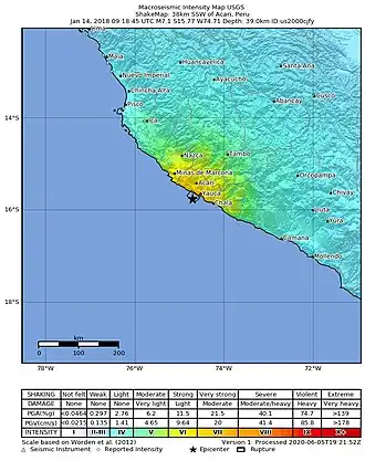 - ↑ United States Geological Survey (14 de enero de 2018). «M 7.1 - 40km SSW of Acari, Peru». Consultado el 14 de enero de 2018.