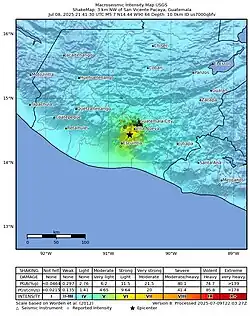 - ↑ «M 5.7 - 3 km NW of San Vicente Pacaya, Guatemala». earthquake.usgs.gov. Consultado el 10 de julio de 2025.